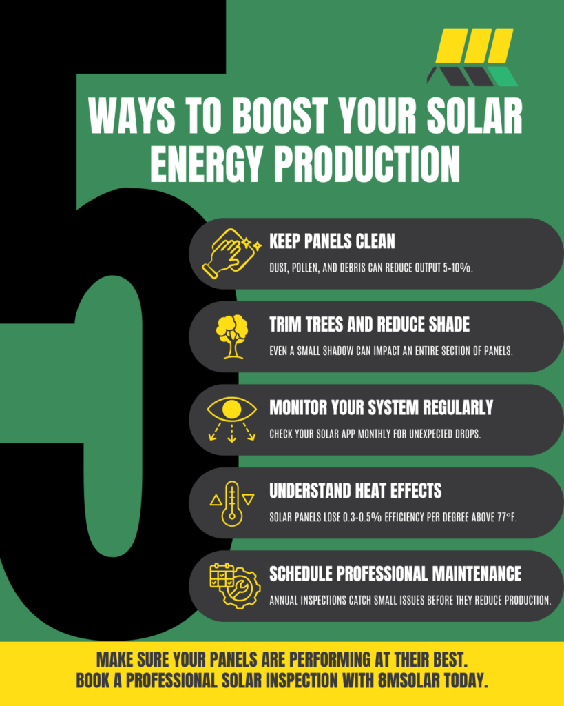 If you already have solar panels installed, these five tips will help you maximize their energy production and identify potential issues before they become costly problems.